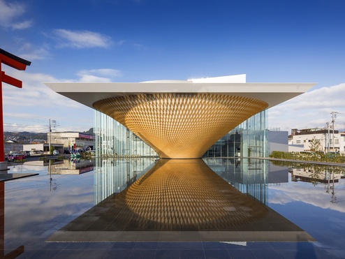 静岡県富士山世界遺産センターは、富士山の世界文化遺産としての価値を伝えるために2017年に開館した展示施設である。建築は坂茂の設計によるもので、逆円錐形の展示空間に映像を投影しながら登っていく構成により、疑似的な登山体験ができる点が特徴となっている。展示では富士山の信仰、芸術、自然環境、噴火の歴史などが体系的に紹介され、単なる景観としてではなく文化的存在としての富士山を理解できる。館内外から望む富士山の姿も含め、学びと体験を融合させた施設である。