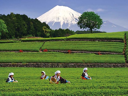 大淵笹葉(おおぶちささば)は、静岡県富士市に広がる茶畑景観で、富士山と茶畑を同時に望める風景として知られている。急斜面に沿って整然と広がる茶畑は、日照や排水に適した地形を活かしたもので、古くから良質な茶の生産が行われてきた。特に晴天時には、手前に茶畑、奥に富士山という日本を象徴するような景観が現れる。観光地化が進みすぎていない点も特徴で、農業の営みと自然景観が日常の中で保たれている様子を感じ取ることができる場所である。