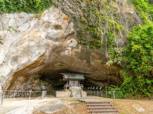 大境洞窟住居跡は、白山神社裏手の洞窟内にあり、神社の社殿改築の際に骨や土器が出土したことから本格的な調査が行われ、縄文時代から中世にかけての異なる6つの層であることが判明した。波浪の侵食で形成された自然洞窟は、奥行35m・入口幅18m・高さ8mという巨大な空間をもつ。学術的に価値が高い遺跡であることから、国の史跡に指定されている。